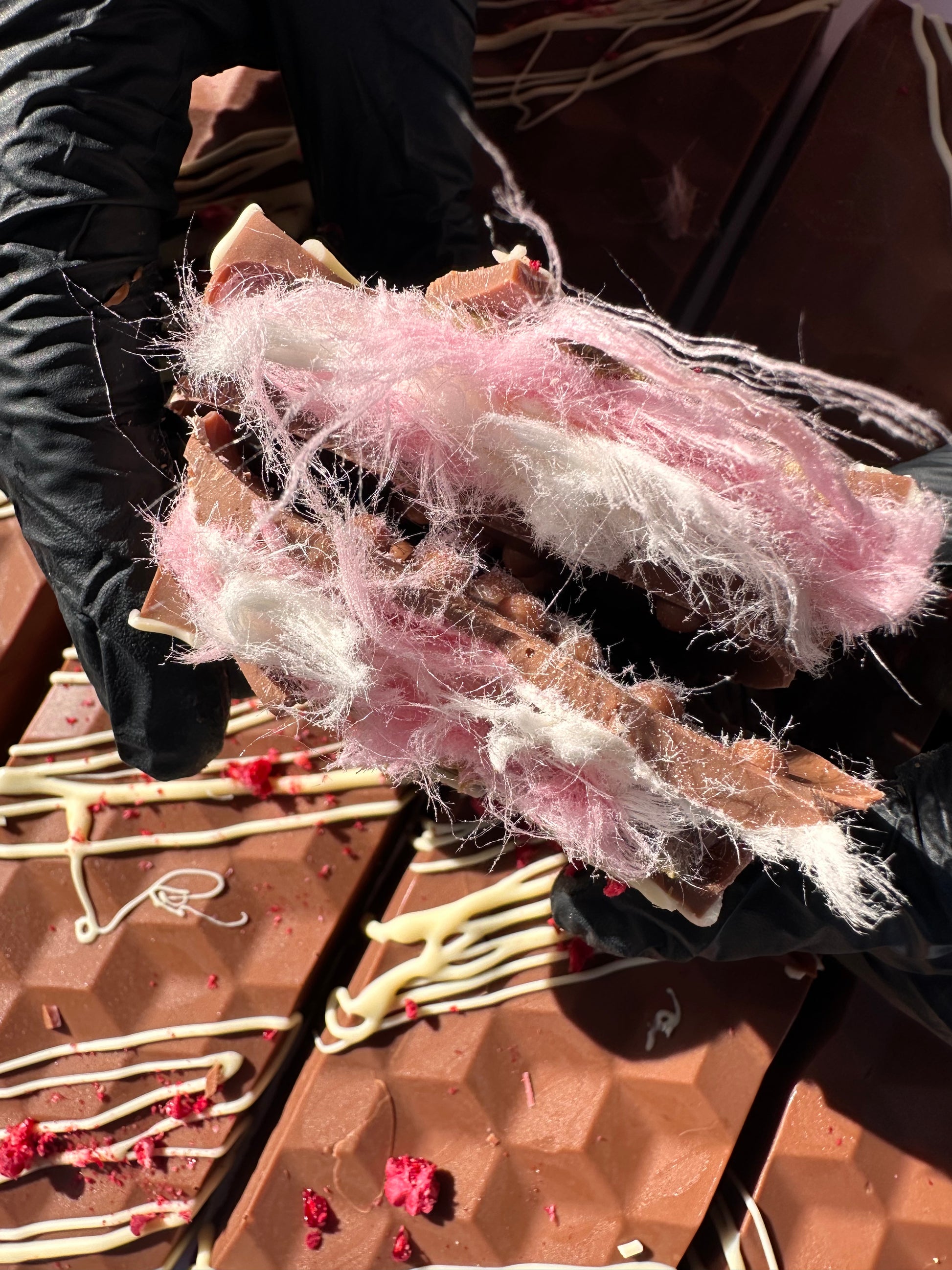 Introducing our Loaded Cotton Candy Crunch Bar, a playful twist on your favourite childhood treat, reimagined into a seriously indulgent chocolate experience. Encased in silky Belgian chocolate, each bar is layered with fluffy cotton candy, our signature crispy crunch, and a swirl of premium pistachio spread.